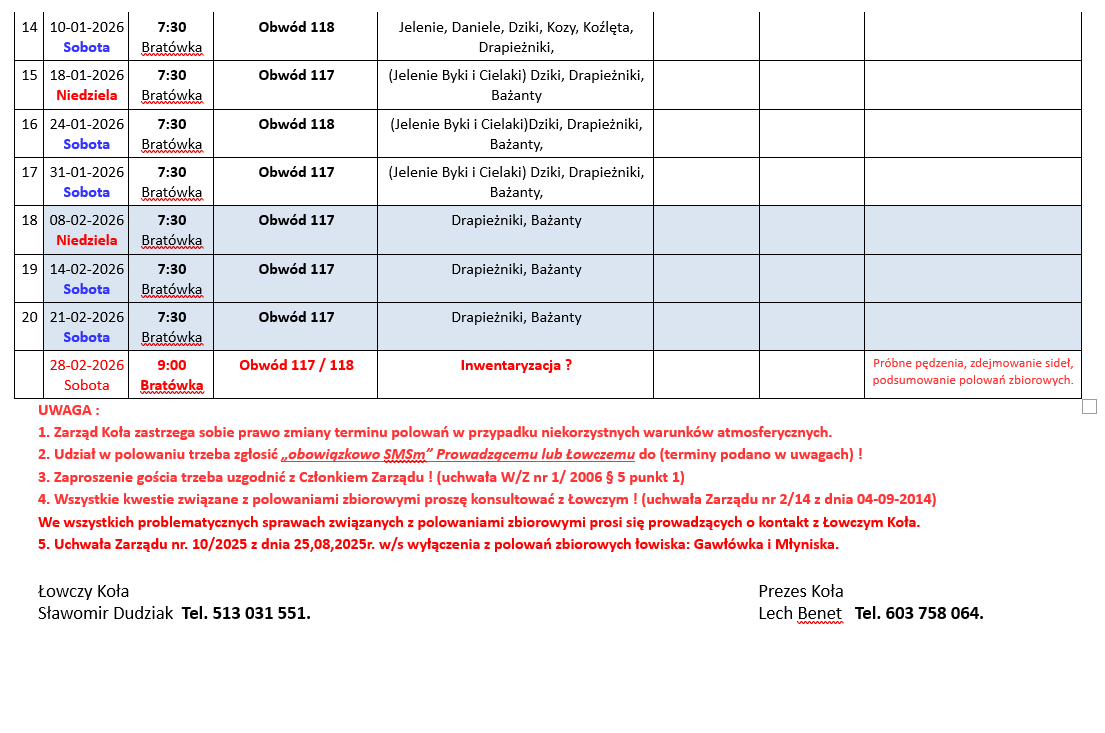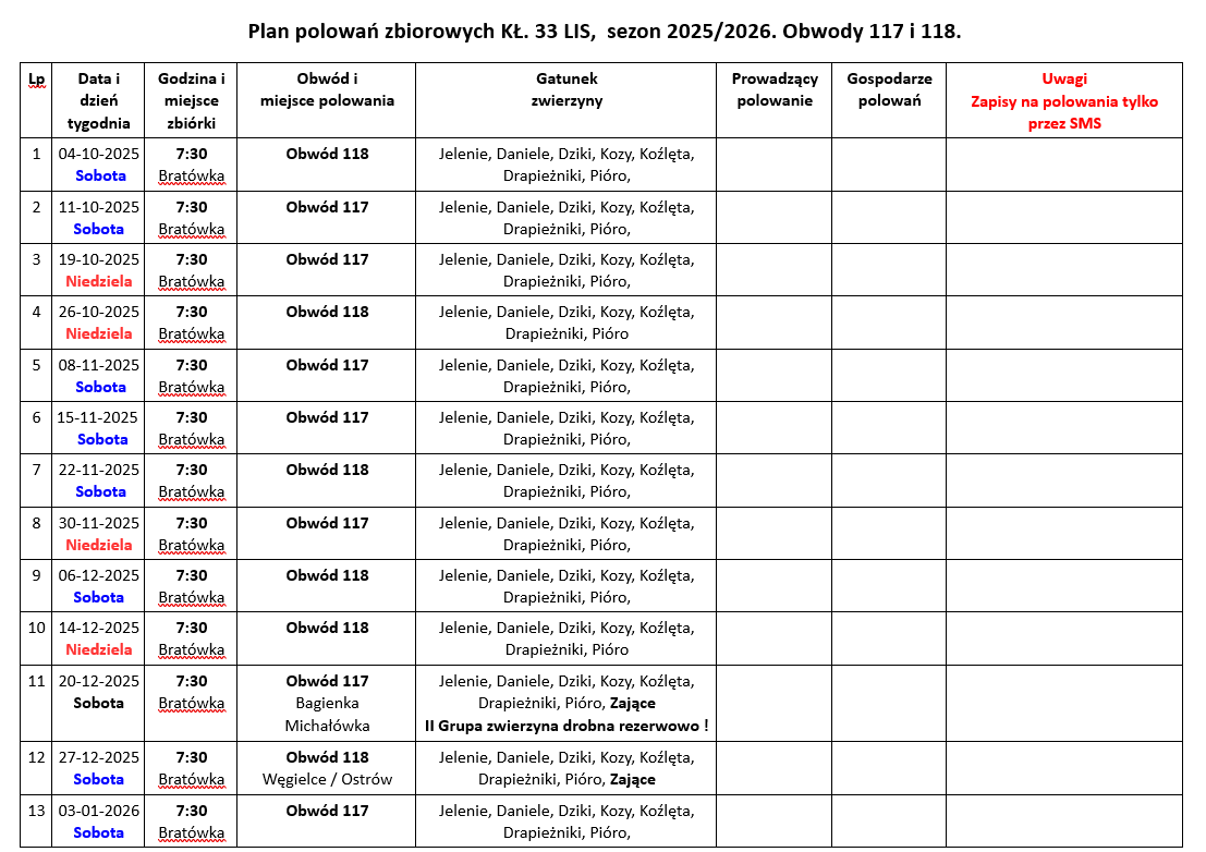 Plan polowań Koła Łowieckiego "Lis"