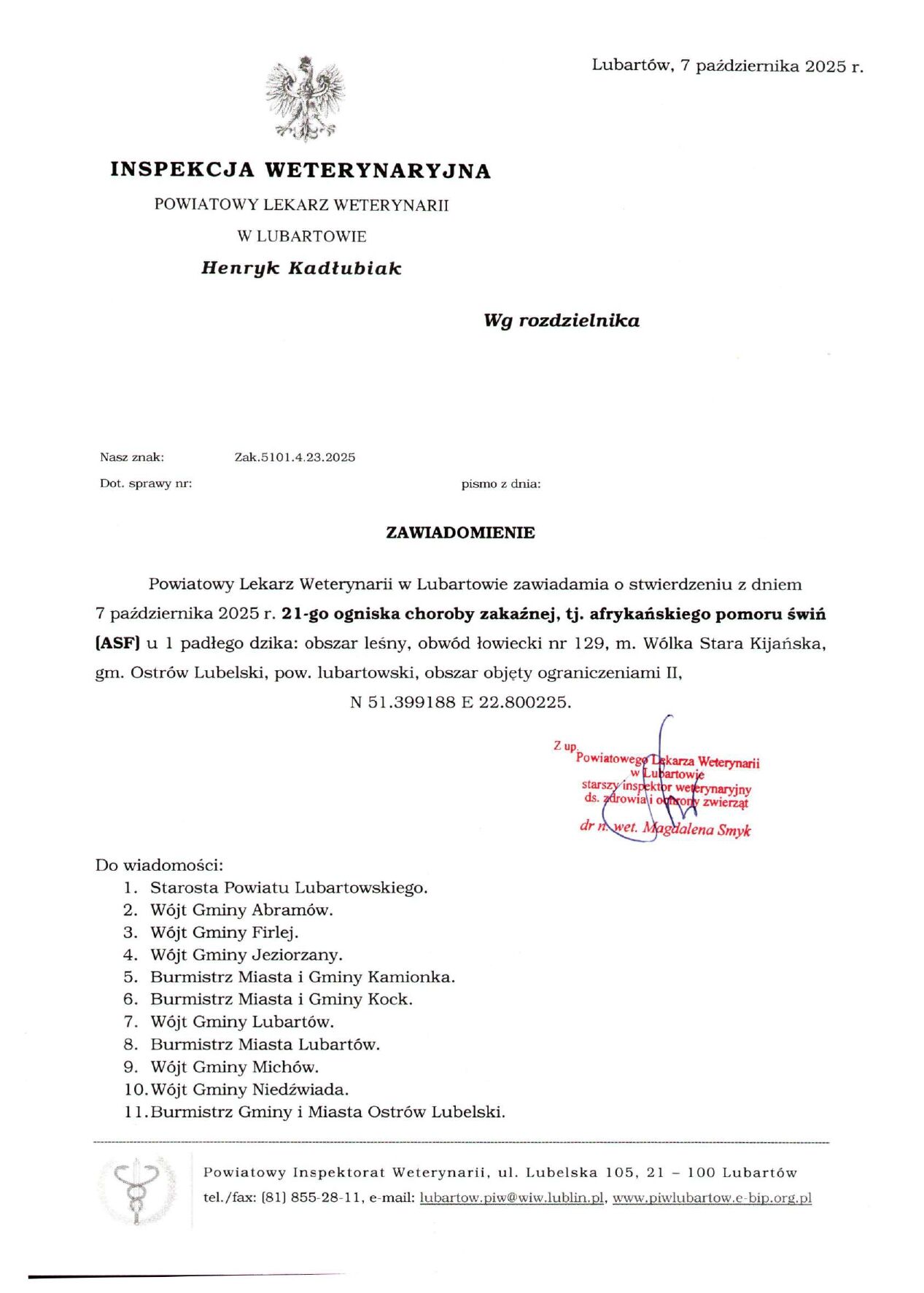 Zawiadomienie Powiatowego Lekarza Weterynarii