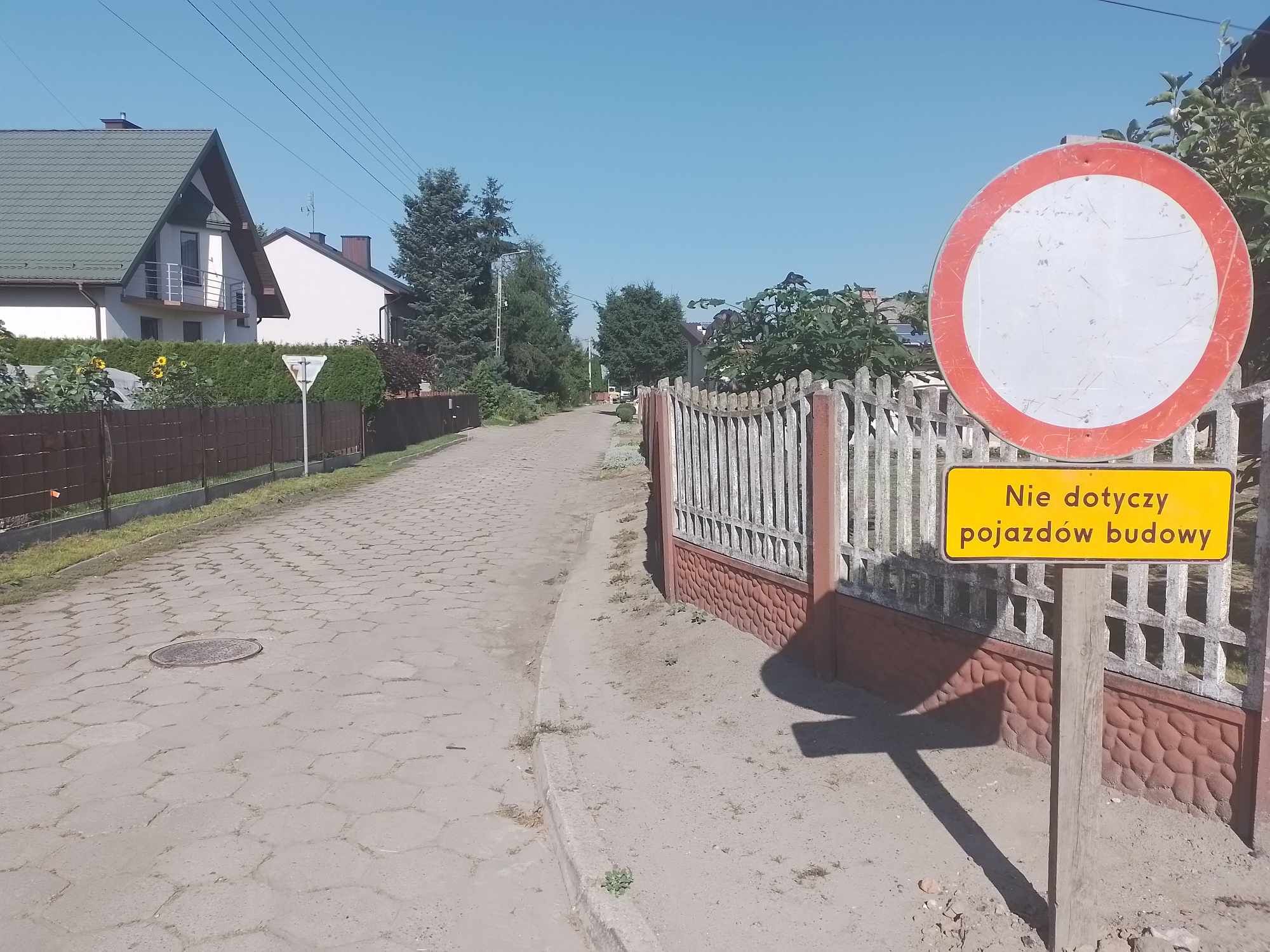 − ułożeniu nawierzchni jezdni z kostki betonowej o szerokości 4,5 m,
