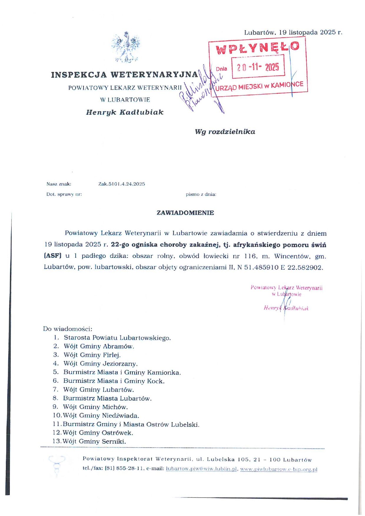 Zawiadomienie Powiatowego Lekarza Weterynarii