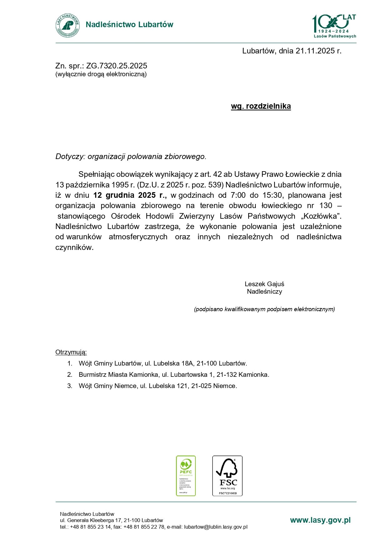 Zgłoszenie organizacji polowania zbiorowego